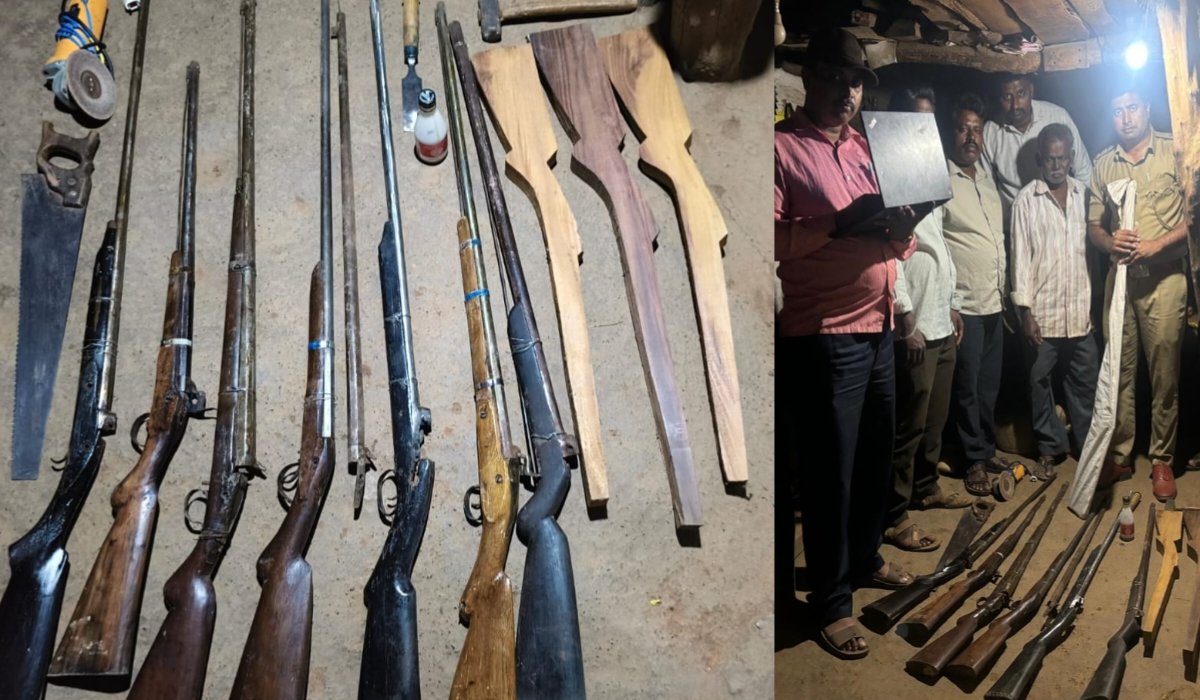 ಲಕ್ಷ್ಮಣಪ್ಪ (67) ಬಂಧಿತ ಆರೋಪಿ. ಬಡಗಿ ವೃತ್ತಿ ಮಾಡುವ ಅವರು ಮನೆಯಲ್ಲಿ ನಾಡ ಬಂದೂಕು ತಯಾರಿಸುತ್ತಿರುವ ಖಚಿತ ಮಾಹಿತಿ ಮೇರೆಗೆ ಪೊಲೀಸರು ದಾಳಿ ನಡೆಸಿ ಶೋಧ ನಡೆಸಿದಾಗ ಸಿದ್ಧವಾಗಿರುವ 7ಬಂದೂಕು, ಮರದಲ್ಲಿ ಸಿದ್ಧಪಡಿಸುತ್ತಿರುವ ಮೂರು ಆಕೃತಿ, ಕಬ್ಬಿಣದ ನಳಿಕೆ ಸೇರಿ ಹಲವು ಪರಿಕರ ವಶಕ್ಕೆ ಪಡೆದಿದ್ದಾರೆ.
